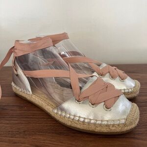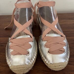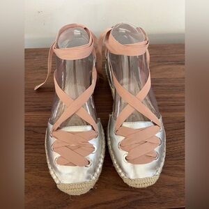 Aldo Silver Pink Emee Leather Jute Espadrille Lace Up Ballet Flats Coquette Sz 8