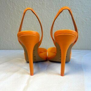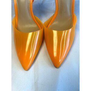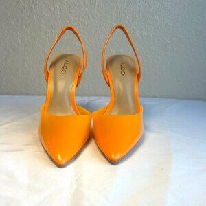 Aldo Sling Back Stiletto Size 7.5 Vinyl Apricot Orange Pointed Closed Toe Pump H