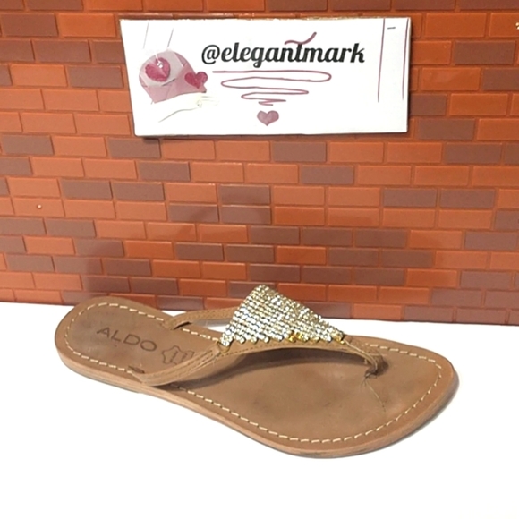 Pretty Aldo sandals for women, size 6, material: leather (some stones are missing from the right sandal). Look at the pics, for more details. Any questions let me know please.