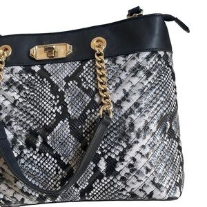 Aldo Snake Print Vegan Leather Satchel Tote Chain Handles Crossbody Strap Animal