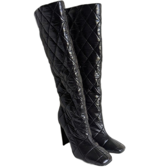 Aldo Snowpuff Black Knee High Quilted Puffer Heel Boots