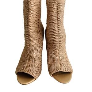 Aldo Sparkle Open Toe Stiletto Size 9 Sock Ankle Bootie Gold Nude Rhinestone
