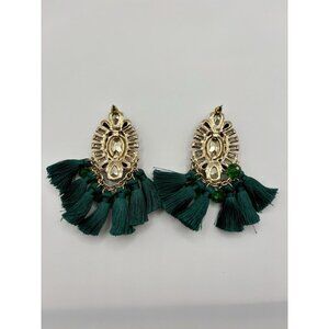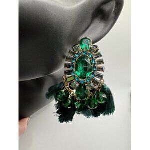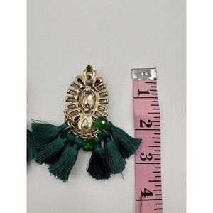 Aldo Statement Green Tassel Crystals Earrings Large Formal Gold Tone