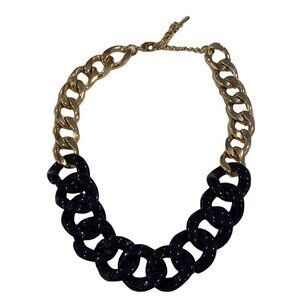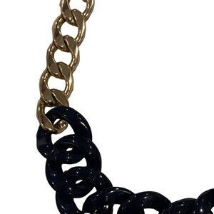 Vintage Designer Aldo Women's Gold & Navy Big Bold Chain Statement Necklace.