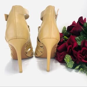🪲 Aldo Strappy Stiletto Sandals/Booties Size 7.5 Tan Leather Open Toe High Heels