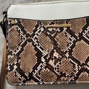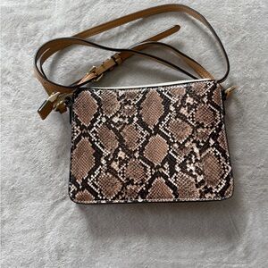 Elevate your style with this chic snake print crossbody bag. Featuring a blend of brown and cream tones, this bag is perfect for any occasion. Its sleek design and adjustable strap offer both fashion and functionality.