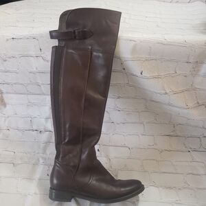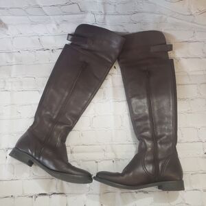 Aldo Tall Riding Boots Brown Leather Zippered Pull On Womens Size 37 US Size 6.5