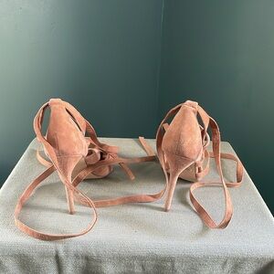 Elevate your style with these sophisticated Aldo heels, featuring a chic lace-up design that wraps elegantly around the ankle. Crafted in a versatile tan hue, these stiletto heels are perfect for adding a touch of elegance to any special occasion. The pointed toe and sleek silhouette make them a timeless addition to your wardrobe.