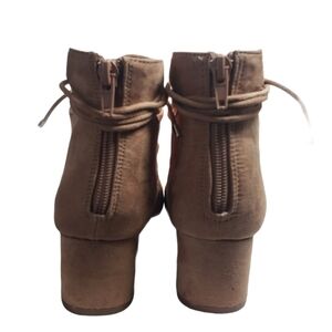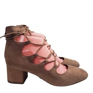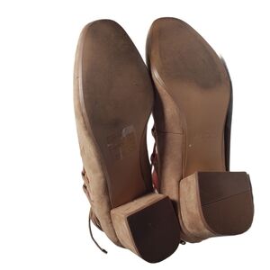 Condition: Pre-Owned - Good - Tan Suede Round Closed Toe Lace Up Block Heels.