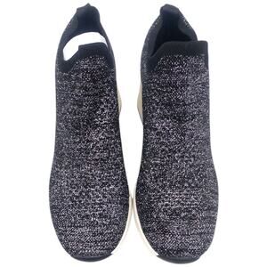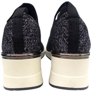 Aldo Tatiana Sock Sneaker Wedge Heel Black Silver Metallic Sparkle Women's 8.5