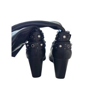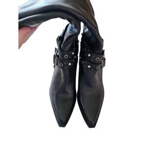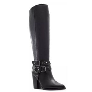 Aldo Thelidan Buckle Pointed Toe Knee High Boots Size 8.5 in Black Block Heel