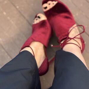 Aldo Tilley Burgundy Velvet Ankle Tie Peep Toe Heels