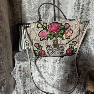 Look at this beautiful Aldo bag which has been embellished to add so much character. It features an outside pocket on the rear and a zip and 2 slip pockets on the inside. Bag measures 11.5" x 3" x 9". You will get so many compliments when wearing!