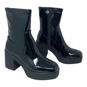 Aldo Upstep Black Synthetic Patent Platform Ankle Boot Size 8; Level up any look with these sought-after pull-on ankle boots destined to become your new go-tos.