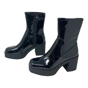 Aldo Upstep Black Synthetic Patent Platform Ankle Boot Size 8 NWT $130 MSRP
