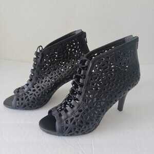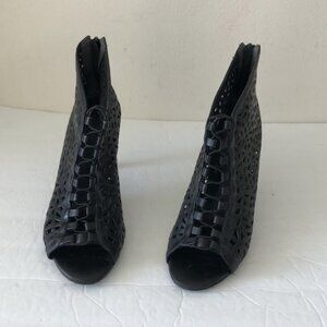 Aldo VTG Laser Cut Cage High Heel Shoes Open Toe Lacy Booties Black Sz. 39