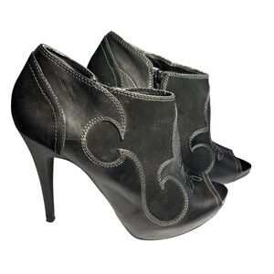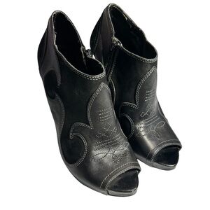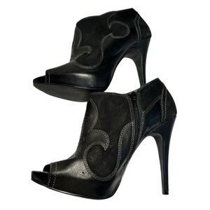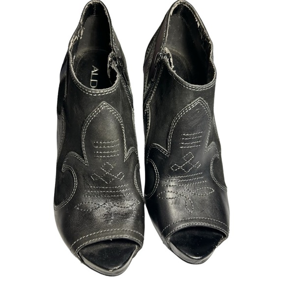Aldo Western Peep Toe Leather Suede Spiked Heel Booties Sz 40
