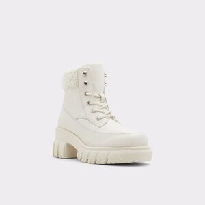 Step into winter with Aldo's white combat boots, designed with a chunky platform and deep-treaded lug sole for excellent grip. These boots feature a padded ankle collar and a sleek lace-up front, offering both style and comfort in cold weather.