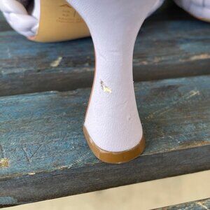This is a floor model—never worn. The soles may show slight discoloration from the price tag removal. This is cosmetic only and does not affect wear. There is some chipping at the heel and toes.