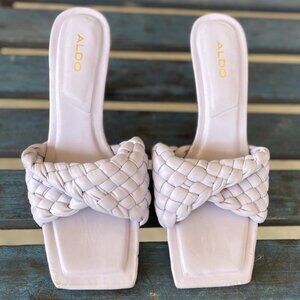 Aldo mules, braided strap, square toe mules, lilac heels, women's kitten heels, PU leather shoes, slip-on mules, summer mules, casual heels, dressy slip-ons, 8.5 mules, braided mules, professional shoes