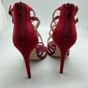 Aldo Women Strappy Back Zip Stiletto Multicolor Reds/Cheetah Leather