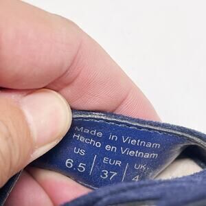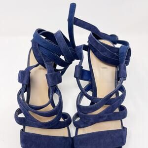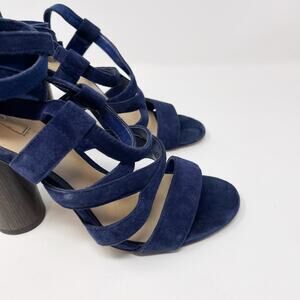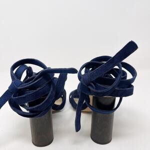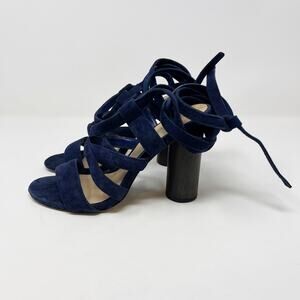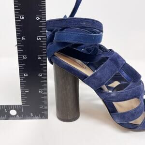 Aldo Womens 6.5 Navy Blue Lace Up Suede Heels 4" Round Wood Heels Open Toes