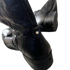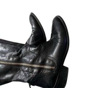 Aldo women's black leather knee high boots with gold zippers. Size 7 in good preowned condition for some minor flaws to heels as can be seen in photos (N)