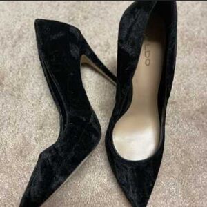 Keywords: Aldo, women's pump, black velvet, stiletto heel, pointed toe, party shoes, cocktail shoes, size 8.5, pre-owned, elegant footwear, Vietnam.