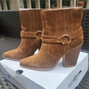 Aldo Womens Brends Cognac Suede Leather Ankle Boots Sz 11
