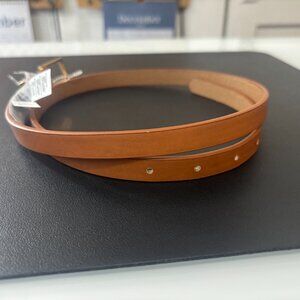 Aldo Women's Brown (Tan) Trouser Skinny Belt, Size Small, Gold-plated Hardware