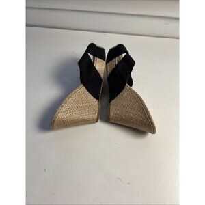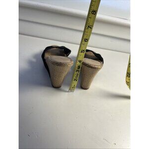 Aldo Women's Brown Wedge Heels Black Fabric Sandals Cross Strap Size 8