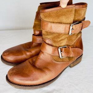 Aldo Women's Faux Fur Straps Buckle Block Heel Ankle Booties Cozy Winter Sz 8.5