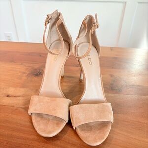 Aldo Women's High Heels Beige Tan Open Toe Ankle Strap Sandals Size 7 EUR 37.5. Excellent condition. 4” heels