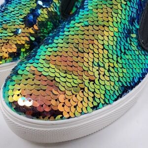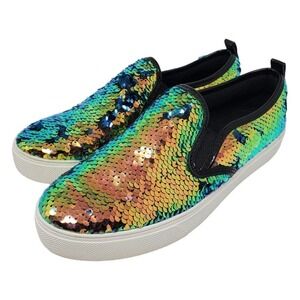 Aldo Women’s Jille Sequin Slip On Iridescent Blue Sneakers Sparkly Shiny Size 6.5