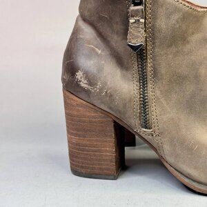 These Aldo genuine leather ankle boots bring effortless style and rugged charm to any outfit. With a distressed brown finish, chunky heel, and side zip, they’re perfect for everyday wear — from jeans to dresses.