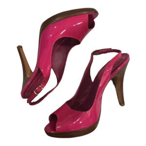 Aldo Women's Pink Peep Toe Slingback Platform Heels Patent Leather Pumps Size 7
