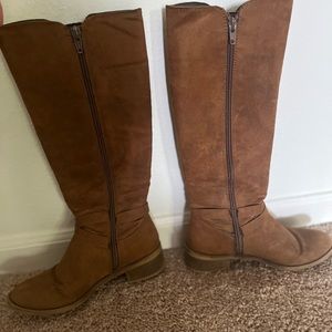 Gently used boots, EXTREMELY comfortable for every day wear. Features a real belted buckle at the ankle and zippers on the inside calf. The zippers unzip all the way down the length of the boot.