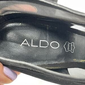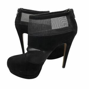 Aldo Womens Size 9 Stiletto Black Ankle Boot Faux Black Suede Mesh Platform Boot