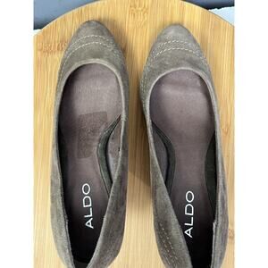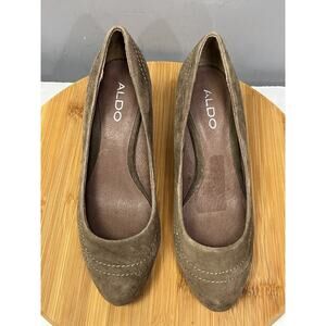 Aldo Womens Slip On Stacked Heel Taupe Sandals Size US 6.5 Thick stitch