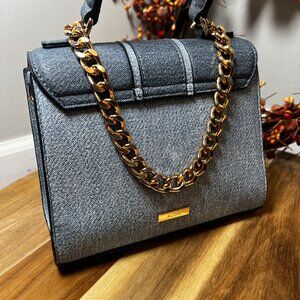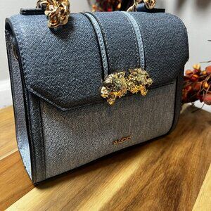 Aldo Womens Small Crossbody Bag Gold Chain Strap w/ Lion Head Clasp Denim Blue