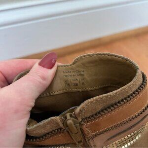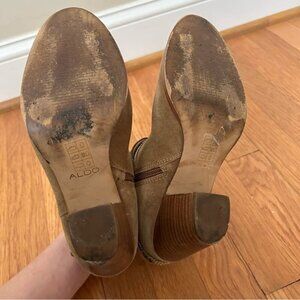 Aldo Women’s Tan Suede Brown Ankle Layered Strappy Western Heel Boots Size 7.5