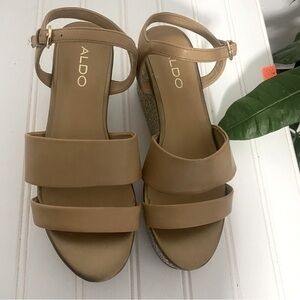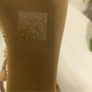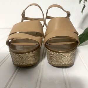 Aldo Women’s Tan with Gold Chunky Platform Sandals Y2K Size 6 Flaw On One Shoe