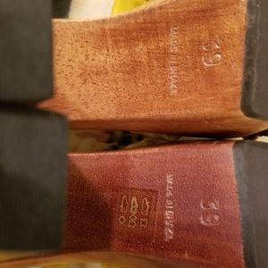 Aldo Wooden Block Heels. Never worn! Twist-knot peep toe design. Yellow-Size 7.5/8.