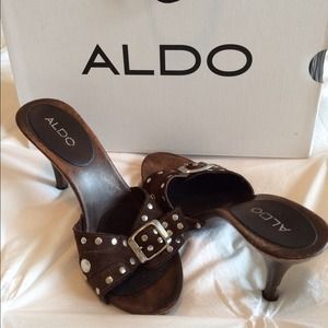 Preloved 💗 hot and trendy brown wooden heels. Have worn a few times to the party. So, didn't walk all day with them. I also added the support pad, so it's very comfortable shoes. Heels 3.5" high.