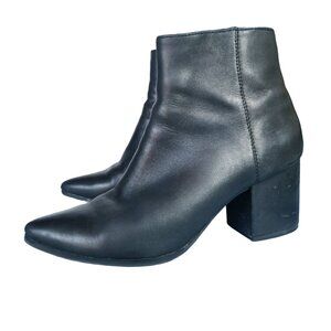 Aldo black leather pointy toe chunky heel booties size 8.5