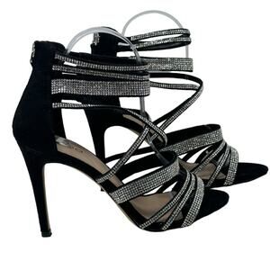 Aldo black with rhinestones strappy stiletto high heels sandals shoes size 7