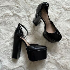 Aldo craybaen ankle strap heeled shoe platform goth black size 7.5
