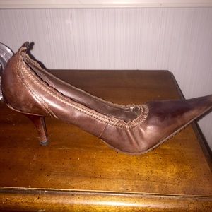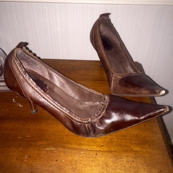 These 2.5" heels are genuine leather and not difficult or painful to walk in or wear! The sole is flexible and has added rippled traction.