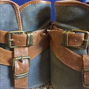 Casual wedge Aldo booties. Grey with brown leather detailing. Rub spots in leather is noted in pictures. *please look at all pictures