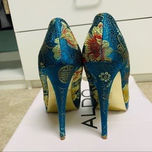 Make your feet feel like gem stones in these beautiful turquoise heels embroidered with Chinese designs.